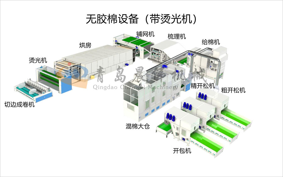 一、無膠棉設(shè)備工藝流程: