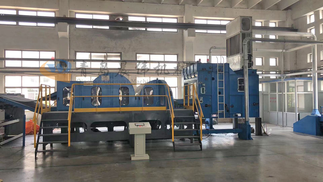 2. CWKS-開松機:各種不同纖維被放入水平輸送簾,經(jīng)壓棉輥和對輥羅拉喂入,經(jīng)高速打手開松后經(jīng)輸棉風(fēng)機以適量的風(fēng)量輸送纖維原料供后道工作使用;并配備橋式除鐵裝備。開松效果好,不易纏棉,產(chǎn)量高。