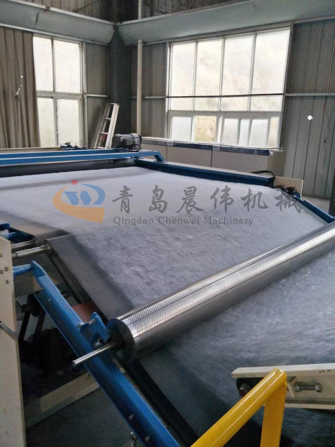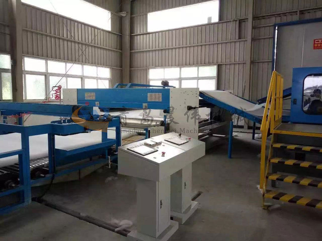5. CWPW-鋪網(wǎng)機:用于將梳理纖網(wǎng)通過移動小車交叉折疊為所需幅寬和定量的多層纖網(wǎng),以供后道工序使用。鋪網(wǎng)輥采用特殊結(jié)構(gòu),加裝壓網(wǎng)輥和導(dǎo)流板,不飄網(wǎng)不起皺,五只大功率電機精確控制各部件的運動,電動輸出簾高度調(diào)節(jié)裝置