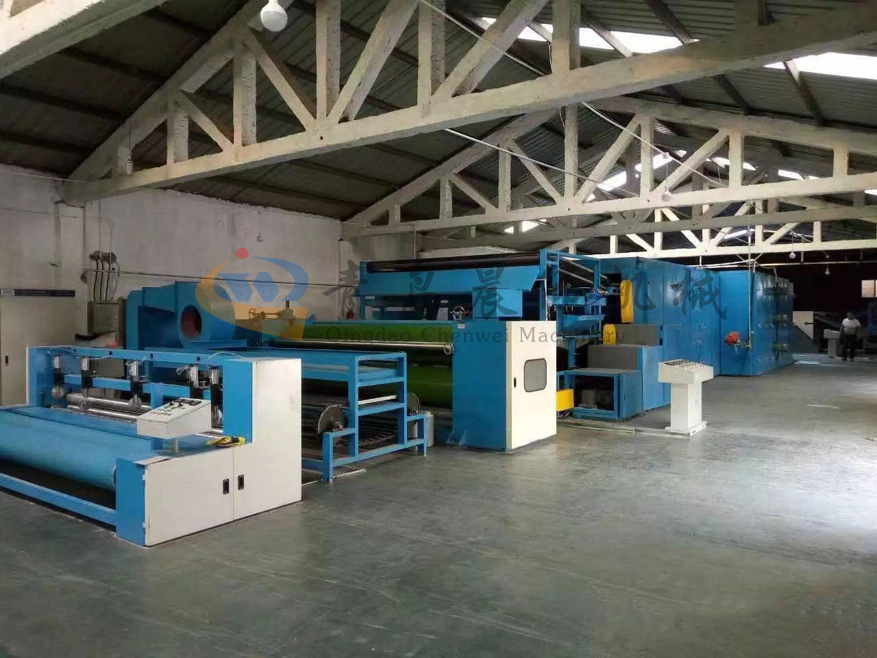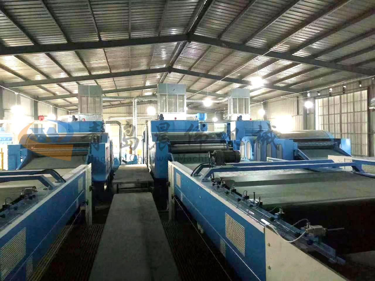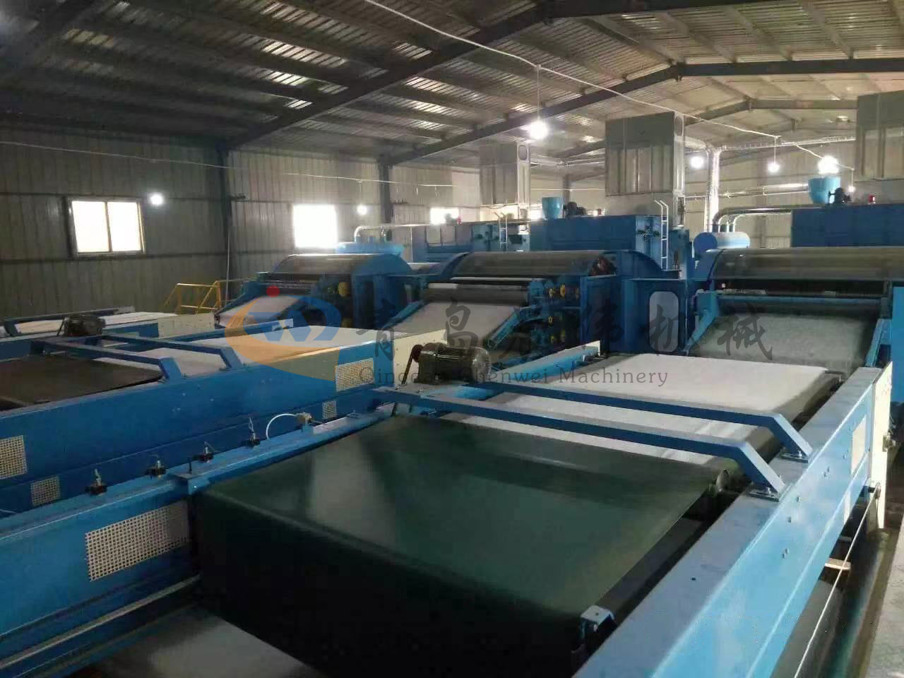 開包機(jī)-開松機(jī)-振動給棉機(jī)-梳理機(jī)-鋪網(wǎng)機(jī)-烘房-燙光機(jī)-成卷切片機(jī)