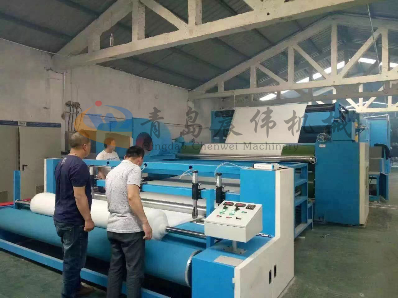 5. CWPW-鋪網(wǎng)機(jī):用于將梳理纖網(wǎng)通過移動小車交叉折疊為所需幅寬和定量的多層纖網(wǎng),以供后道工序使用。鋪網(wǎng)輥采用特殊結(jié)構(gòu),加裝壓網(wǎng)輥和導(dǎo)流板,不飄網(wǎng)不起皺,五只大功率電機(jī)精確控制各部件的運(yùn)動,電動輸出簾高度調(diào)節(jié)裝置。