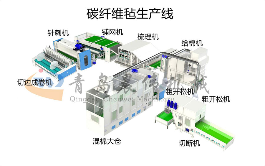 切斷機-開松機-振動給棉機-梳理機-鋪網(wǎng)機-針刺機-切邊成卷機