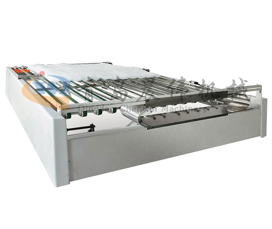 7. CWZT-裝套機:將定好寬幅經(jīng)過烘箱定型成品的棉胎裝進被套,自動裝套。